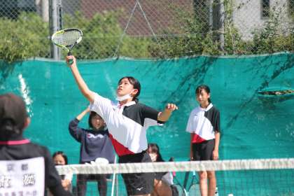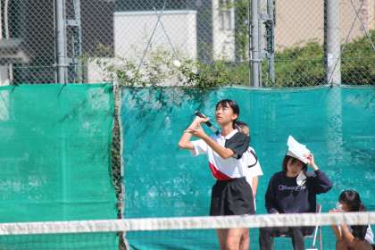 第1ゲーム、第2ゲームとデュースになる大熱戦となりました。2人は、団体戦の時以上に自信を持ってコートに立っていました。Hさん(2−3)の安定したリターンや、Uさん(2−3)の効果的なボレーが決まるなど、強いペアと互角に渡り合いました。