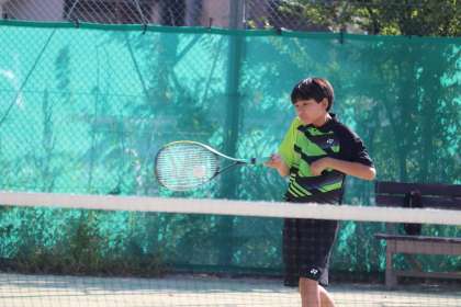 Fくん(2−2)・Yくん(2−4)ペアが、初陣にのぞみました。初戦の緊張からか第1Gはサーブが安定せずに相手ペアにゲームをとられます。しかし、第2GはYくん(2−4)、第4GはFくん(2−2)のリターンが効果的に決まりファイナルゲームに持ち込みます。ファイナルゲームは、2人とも絶好調で次々とポイントをとり3−2で2回戦に勝ち進みました。