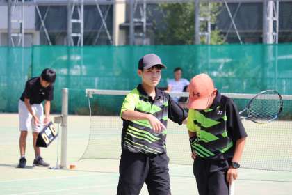 大淀中の第1ペアOくん(2−3)Oくん(2−3)ペア。この大会もシードからの出場です。余力を持って勝ち進むと思われたこの試合。予想外の展開です。