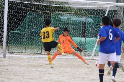 しかし、開始7分、藤森中がドリブルからDFを交わしシュートを決めて1−1のふりだしに。その直後12分、次はゴール前の混戦から放たれたシュートがゴール右隅に決まってしまい1−2。
