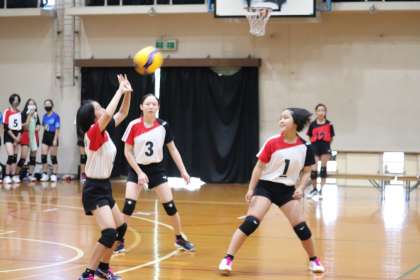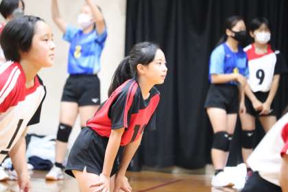第2セット。第1セット同様に、相手サーブに崩されます。Tさん(2−2)の懸命のブロックが惜しくもボールが吸い込まれ失点。序盤0−6とリードされますが、Uさん(2−3)のアタックやNさん(2−2)のサーブなどで、13−19と得点差を広げられないように粘ります。Uさん(2−3)のアタックが決まったときは、みんな飛び跳ねて喜んでいました。しかし、そこから再び差が広がります。途中、Nさん(2−2)が「落ち着くんだ」と声をかけます。Nさん(2−2)は、要所で声かけをするムードメーカーです。