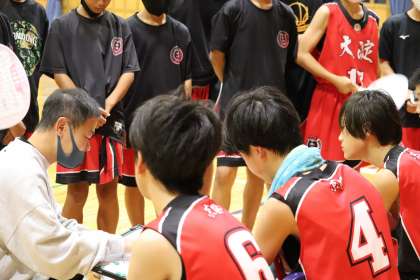 予選リーグを全勝で1位通過した男子バスケ部。いよいよ、決勝トーナメントが始まりました。1回戦は、勧修中学との対戦です。予選リーグ以上にベンチからの声援も熱くなっていました。
