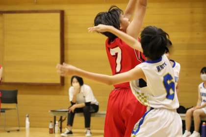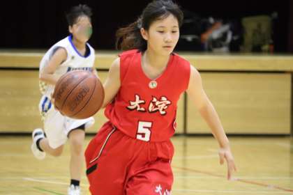 第1Q。Yさん(2−2)のシュートで大淀中が先制します。しかし、西ノ京中も応戦して4−7。ここで、Yさん(2−2)、Nさん(1−3)とパスがつながり、最後はNさん(1−3)のショットが決まり6−8。続けて、Yさん(2−4)のミドルショットが決まり8−8と振り出しに。Nさん(1−3)のオフェンスリバウンドからのショットで10−8と逆転。終了間際には、Kさん(1−3)の3Pが決まるなど15−13とリードして終えました。スタートから、組織的なプレーが光りました。