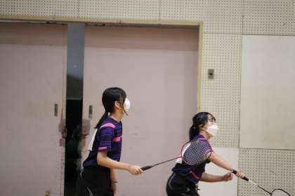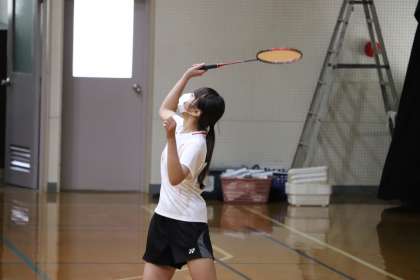 第3試合は、Kさん(2−4)・Hさん(2−4)ペアが、同じくノートルダム女学院中ペアと対戦しました。序盤は接戦となり12−12とお互いに譲らない展開となりました。しかし、相手校のミスが重なり17−14とリードします。そこから、Kさん(2−4)がコースを狙ったショットが決まり、20−16と一気に差を広げます。最後は、相手校のショットがアウトとなり21−16で勝利しました。