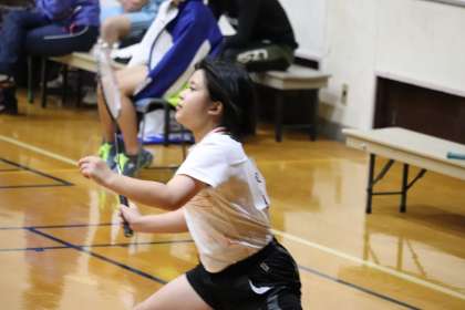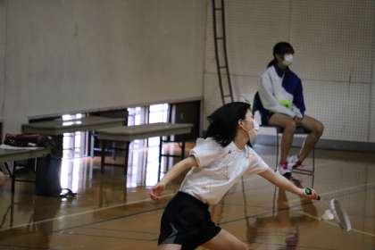 対戦相手は、準優勝した選手との対戦となりました。とても強い相手でしたが、Kさん(2−4)は、コートを動き回って必死にシャトルを拾い続けましたが、悔しい敗戦となりました。