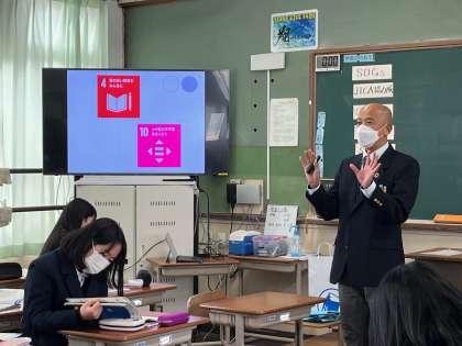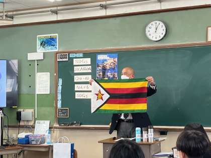 教頭先生は、昔、青年海外協力隊の一員としてアフリカのシンバブエ共和国で活動していました。3年生の英語の授業で、その時の体験談を語ってくれました。授業を通して、言語の大切さ・海外に行って自分たちにできることがあるかもしれないなど、いろいろなことを考えさせてくれる内容でした。昨日からの2日間、教頭先生、ありがとうございました。