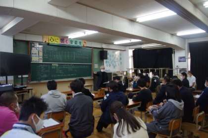 本日、午後から研究授業がありました。外部から講師をお招きして1年4組の音楽の授業でした。午前中から来ていただき、数名の教師と一緒に授業見学を通して貴重なアドバイスも頂きました。研究授業は、ギターの魅力を味わって演奏に挑戦します。音の移り変わりをスムーズかつ響きのある音色で演奏するにはどのような工夫が必要かをグループでお互いに運指や姿勢を確認しています。すごく前向きに授業に取り組んでいる姿が印象的でした。授業後は、他校の先生方も交えて学び合い高め合う集団の育成について意見交流しました。先生たちも学ぶことはたくさんあります。教育の質を高めるために先生も勉強です。