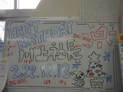 朝一番の職員室の白板に大きなメッセージが二つ。校長先生への誕生日メッセージです。昨日の夜にサプライズで作成したのでしょう。温かい教職員です。昼休みの生徒会からの全校放送では、バースディソングもありました。温かい生徒会です。そして6時間目終了後、校長先生が出張に出るときに体育の授業を終えた2年生から、校長先生に“誕生日おめでとうございます”とお祝いのメッセージがありました。温かい学校です。校内に世界に一つだけの花がいっぱいの一日でありました。