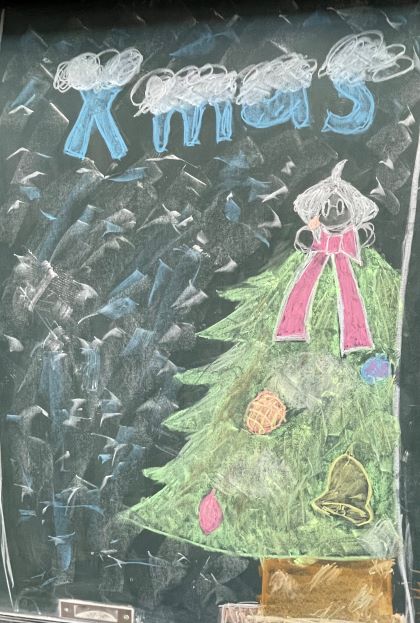 テストも終わり冬休みの足音が聞こえてきました。その前に三者懇談がありますが。このホームページも街中もクリスマス仕様になっています。学校では、美術部の1年生が、美術室の黒板にクリスマスバージョンの黒板アートを作成してくれました。もちろんクリスマスシーズン限定の作品です。みなさんも一度美術室に足を運んでいただき、クリスマス気分をお楽しみ下さい。