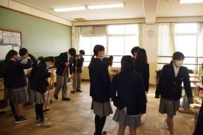 最終日恒例の大掃除です。ある担任の先生がこんなことを言っていました。“30分、どこを掃除しようかと思っていたんです。けど、掃除が始まったらみんな自分たちで掃除するところを探したりして本当に細かく綺麗にしてくれました。時間がもっとほしかったです。”みんなが一生懸命掃除している姿に、とてもうれしそうにその担任の先生は話されていました。30分という短い時間でしたが全校生徒で学校を綺麗にしようとしている姿が素敵でした。みんなの姿に刺激されて職員室も大掃除です。新年は綺麗な教室でみなさんをお待ちしていますね。