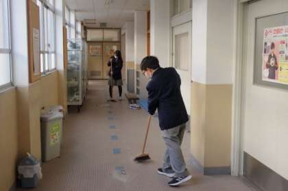 3学期初めての委員会がありました。各委員会で3学期に取り組むことを話し合っていました。暫定服装規定についてのことやコロナインフルエンザ対策の換気についてのことや後期スローガンを振り付けで表現しているところなどどの委員会も工夫を凝らした活動をしています。明日以降にクラスのみんなに伝達があると思います。そんな委員会の中、校内を掃除している人たちがいました。尋ねてみると、委員会の間に校舎内を掃除しているんですと吹奏楽部の人たちが応えてくれました。心が温かくなる場面をありがとうございました。