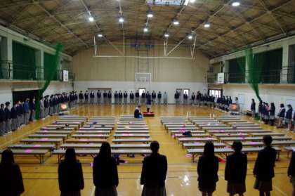 3年生が、大きく一つの円になって発声練習から式歌の練習と送る会の練習をしています。3年生にとっては、全校生徒が集まる最初で最後の送る会になります。受験で忙しい中でしたが、準備が着々と出来ているようです。1年生も2年生も明日の本番に向けて急ピッチで最終段階に入っています。明日は、3学年が集まる最後の場面です。心が温かくなるような会になりそうです。