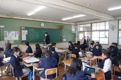 たくさんの保護者の方が,参観で来校していただいています。1年生2年生は,担任の先生が授業をしています。1年生にとっては,中学生になって初めての参観です。コの字型の座席も始まったばかりですが,少し慣れてきたようです。2年生は,引き続きの担任の先生もいれば,新しい担任の先生もいます。どのクラスも緊張しているかと思いきや積極的にペア活動やグループ活動をしている印象です。これから部活動の仮入部の3日目が始まります。