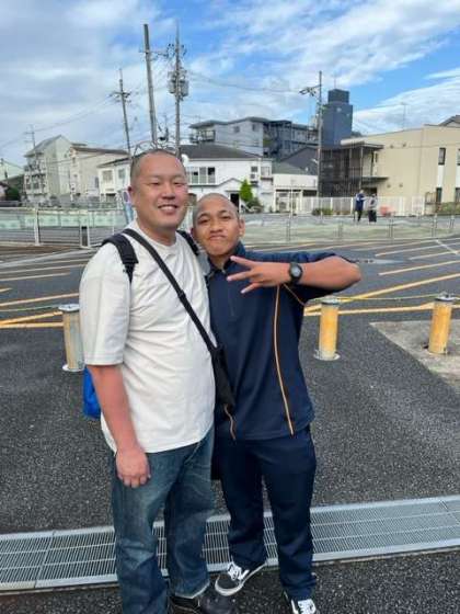 みんな笑顔で競馬場に集まっています。