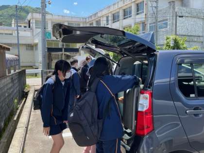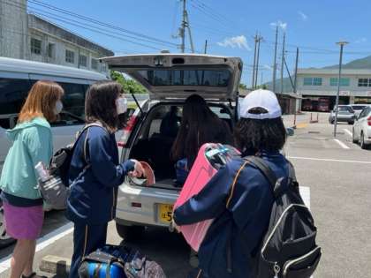 初対面の瞬間です。生徒達は緊張した様子ですが、受入家庭の方は慣れているのかリラックスした様子で、生徒達に気さくに声をかけています。
