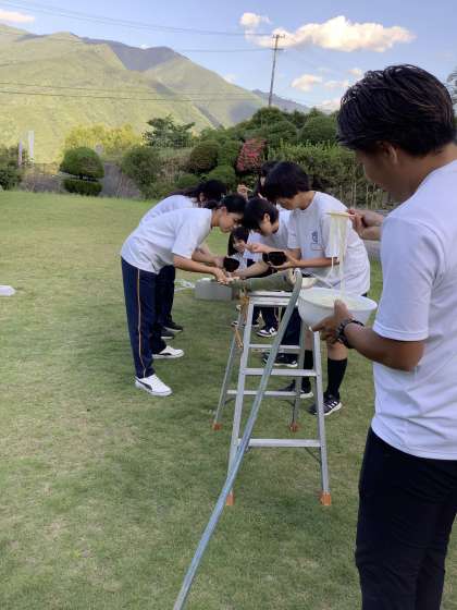 流しそうめんも体験しました。大自然の中でのそうめんは最高です。