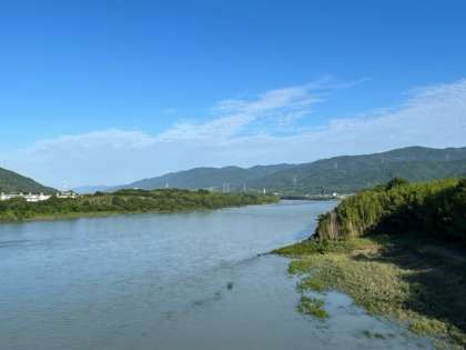 美馬市の様子です。朝から晴天です。爽やかな風がふいていて、過ごしやすい天候です。本日は、11時に離村式を行い、昼食後ラフティングを行います。吉野川の水位も安定しており、予定通り実施します。ラフティング終了後、ネスタリゾート神戸に向かいます。18時半の到着予定です。