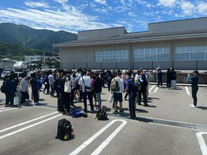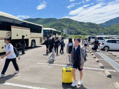 予定より早く出発しました。今から30分ほどでラフティング会場に到着です。