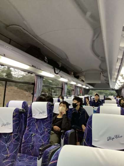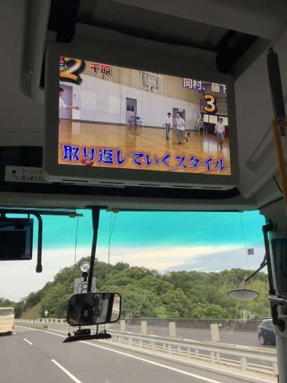 ネスタリゾートのホテルに向かうバスの中では、動画班が作成した作品の数々を視聴中です。