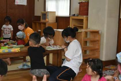 保育園では,元気いっぱいの園児たちと一緒に遊んでいました。先生から,「テキパキと動いてくれてよく頑張ってくれています」とうれしい言葉もかけてもらいました。