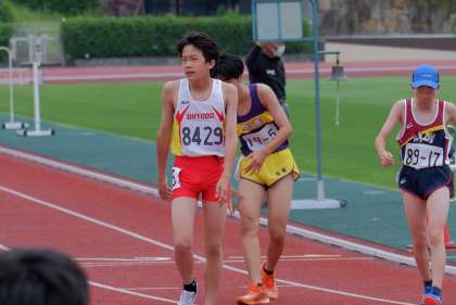 800メートルと1500メートルには、3−3Tさんと3−5Nさんが出場しています。1周目から2周目と周が増すごとにしんどくなる中を、懸命に走っています。スタート前は緊張していましたが、走り出すと前を向いて必死に走っている姿がかっこよかったです。