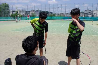 ベスト8!3−2Hさんと3−4Oさんのペアも、最近組んだペアです。しかし、息はしっかり合っています。最初の試合から3−0で勝利です。全市大会をかけた試合も、我慢のラリーが続く試合展開でしたが、ミスが少なく見事4−0のストレート勝ち。ここまで1ゲームも落としていません。ベスト8をかけた試合では、3ゲーム目のゲームを落としてしまいましたが、3−1で勝利。この勢いのまま勝ち続ける予感もしましたが、そんなに甘くありませんでした。ベスト4の壁は厚く1−3で負けてしまいました。全市大会での活躍も期待できそうです。