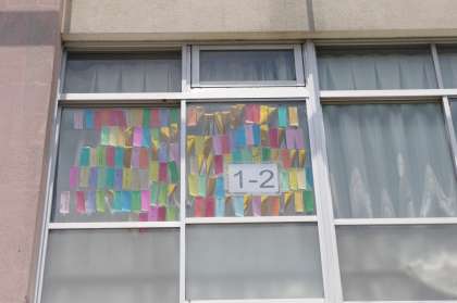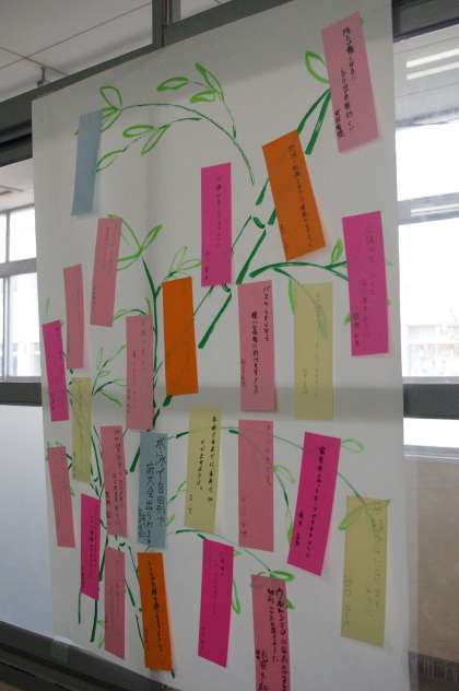 お昼の放送でも放送室から七夕のことが伝えられています。クラスによっては短冊に願いを込めているクラスもあります。教室掲示しているクラス、空に願いを込めて窓に掲示しているクラス、いろいろです。願いもそれぞれです。みんなの願いが叶うといいですね。大淀中学校の願いは、 “みんな元気に健康”です!
