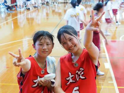 第2Pも終始、大淀中ペース。20−0とさらにリードを広げます。ここで京都女子中も反撃。連続でゴールを決めて24−6。そんな流れも、Yさん(3−5)の3Pシュートが決まり、大淀中に流れを取り戻します。Yさん(3−5)は喜びのあまり、ジェスチャーで観客を盛り上げます。残り47秒には、Yさん(3−4)のパスカットから、ボールを受けたN(2−3)が冷静にシュートを決めます。