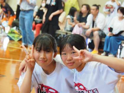 第4P、Mさん(2−3)のシュートが決まりスコアが動きます。1分34秒、Mさん(2−3)のパスからのNさん(2−3)のシュートは鮮やかな速攻でした。シューターのYさん(3−5)が、このピリオドだけで2本の3Pを決めます。試合前に取材班と約束した「3Pを3本決める」を果たしてくれました。感動です。