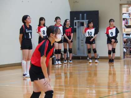 第2セットは、終始相手校のペースでした。タイムアウトを取ったり懸命にレシーブしたり奮闘しますが、スパイクを決められない場面が多く、そのあたり、相手校の方が安定していて、この差が大きいなと思いました。それでも、7点とれたことは立派です。レシーブと共にサーブもよくなった結果だと思います。