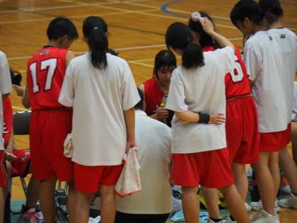 試合の方は、序盤互角の展開でしたが、一度リズムが狂ったときに焦りから修正できずにいました。この修正力はメンタルの問題もありますが、これからの課題となるでしょう。2年生・1年生が中心のチームでしたので、秋の新人大会に向けて改善して欲しいと思います。3年生は2名だけの部員でしたが、いろいろなことがあったと思います。それでも、2名だけでチームを引っ張ってきたのですから、そのことを自信にして欲しいと思います。中学校でのバスケ生活、お疲れ様でした。そして、一杯の元気をもらいありがとうございました。