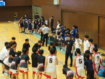 女子バスケ部に続き、男子バスケ部も1回戦をYくん(2−3)のフリースローで大接戦の末に勝利し2回戦にのぞみました。2回戦の相手は京産大附属中学です。