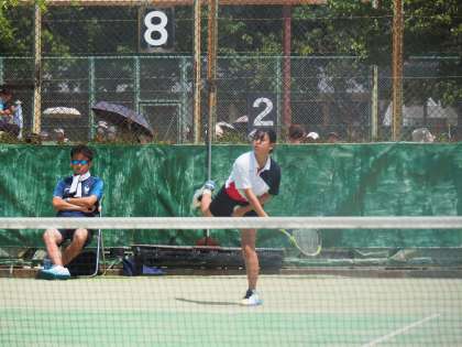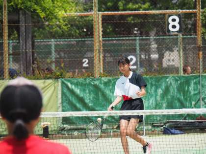 樫原中はシードペアです。しかし、第1G、第2Gとデュース戦に持ち込み粘ります。惜しくもあと1つのところでゲームを連取されます。第4Gで取り返しますが、序盤の接戦を落としたことが大きく影響しました。第4GではHさん(3−2)のサービスエースが決まるなど、ボールを追いかけて粘るプレーが印象的でした。Uさん(3−4)のさわやかなプレーが印象的でした。