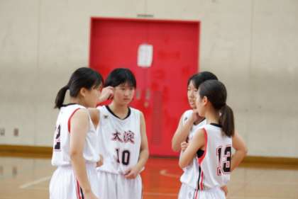第3Qは、残り2分53秒で5人のプレーヤーが全員交代しました。Tさん(2−4)は3Pを決め、Yさん(2−2)はディフェンスで奮闘していました。このクォーターも相手校を0点に抑えて得点も106点と100点ゲームになりました。
