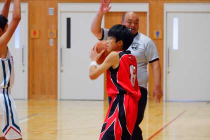 第2Qも大淀中の流れが続きます。前からのプレスが効いて、ボールを奪って一気にリングに向かいます。Kさん(2−3)のシュートが決まったところで、取材班に次の予定が入っていたので途中退出。後から顧問の先生に確認すると、その後も個々のスキルで上回る大淀中の得点ラッシュが続いたようです。