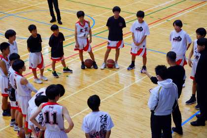男子バスケ部の2回戦は、22日(日)かたおかアリーナで行われました。対戦相手は、優勝候補の加茂川中学校。力では相手校の方が上です。しかし、男子バスケ部はあくまで勝つことを目標に試合に挑みました。