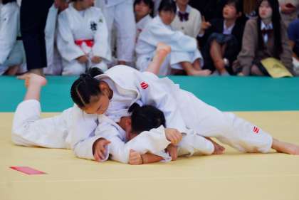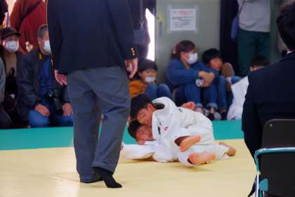 Tさん(1−2)は、開始から攻め込み、開始1分で相手選手に消極的姿勢の指導が与えられます。1分10秒には、押さえ込みに入りますが、ここは惜しくも相手選手にとかれてしまいます。残り1分には、相手選手に2つ目の指導が入ります。そして、残り48秒、Tさんがしかけた立ち技に主審は技ありを認めますが、副審の手が上がらず解除。その後の組み手で、相手選手が後ろに下がり場外指導。これで指導3つとなり、Tさんが一本勝ちしました。