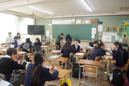 認証式の後,第1回各種委員会が行われました。新生徒会本部役員が初めて中心になって会を進行しています。みんなが温かく見守っている姿と何とかみんなをまとめようとしている姿に初々しさを感じます。自己紹介から副代表や学年代表など1回目からやることはたくさんありましたが,みんな頑張りました。