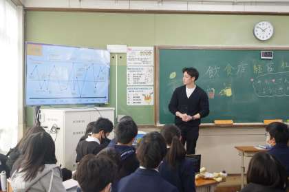 二人目のゲストは、飲食店社長です。3人の予定でしたが、刑事の方は急用で残念ながらキャンセルになってしまいました。飲食店社長からは、道徳の授業を通して心を磨くことの大切さの話がありました。コロナ禍で苦労した飲食店経営から逆転の発想で成功を収めたことなど人生いい時もあれば調子が悪い時もあることなどを伝えてくれました。どちらのグループも、プロデュースのメンバーを中心に講演会をすすめているところが立派でした。