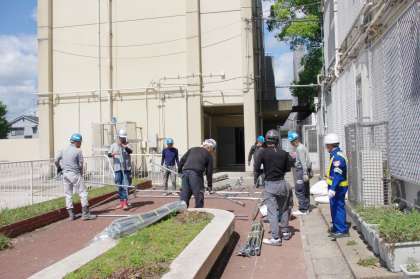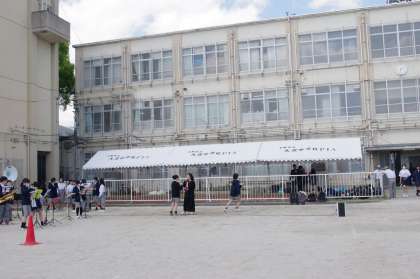 “先生、何があるんですか?”南校舎南側から西校舎へ向かう道に、工事業者の方々がボランティアでテント設置をしてくれています。体育祭でもないのにテントが3台も設置されているのに生徒の皆さんも不思議に思っているようです。なぜテントが3台も設置されているかは、雨の日の登下校や移動教室の時や暑い時期の体育や部活の時にきっとわかると思います。昨年、PTAさんから寄贈いただいた新テントが活躍してくれそうです。