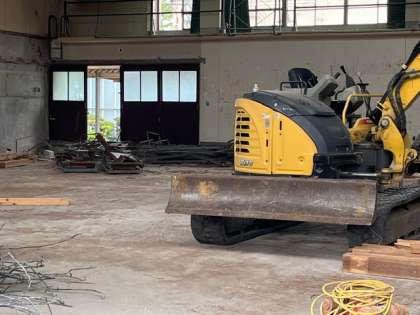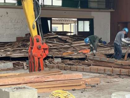 4月12日から始まった体育館工事ですが、1週間をかけて体育館のフロアー部分の解体が終わりました。職人さんの手際の良い作業に驚くばかりです。