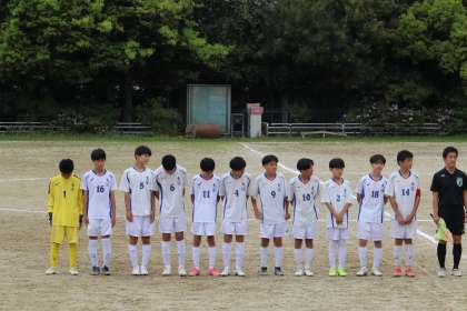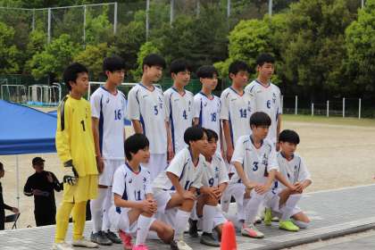 サッカー部は、3年生部員がおらず、2年生中心のチームです。昨年度の新人大会では、これまでもか!というぐらい大差のゲームでしたが、下を向かずに一生懸命に練習してきました。その結果、練習試合で勝利するほどまでに成長しました。次の目標は、公式戦初勝利です。取材班も、その一心で楽しみしてきました。
