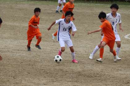 後半、反撃したい大淀中。しかし、西陵中のペースで試合が続きます。35分には、左サイドを崩され、センターリングをヘディングで合わされ1−3。38分には、右サイドをドリブルで崩され1−4。ここで、DFのNさん(2−2)に代わってIさん(2−2)がコートに入り流れを変えようとします。しかし、43分、54分と失点し、1−6と大きくリードされます。Sさん(2−3)、Nさん(2−2)を中心に相手ゴールにせまりますが、なかなかゴールには結びつきません。残り1分、Nさん(2−2)のスルーパスがSさん(2−3)につながりましたが、相手DFの寄せが早くゴールなりません。