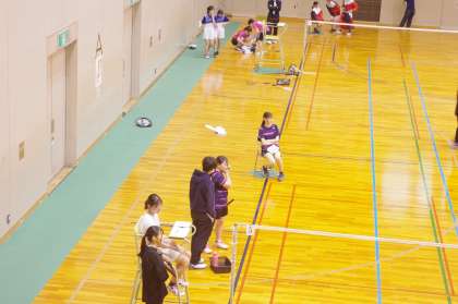 試合前、トーナメント表がなくて困っている先生に“持ってきましょうか?”と一声かけてくれたやさしい3−2Fさんの登場です。序盤は、相手の前後に揺さぶるショットに苦しみリードされるも徐々に相手の攻撃にも慣れてきて前半を10−9とほぼ互角に試合が進みます。1セット目後半は、調子がよく21−14で先取します。しかし、この試合はこのままではいきません。相手が攻撃のリズムを変化させてきたようです。前半を11−15でリードされます。14−19そして追い上げて18−19まで粘ります。しかし、最終的にこのセットを奪われ試合はファイナルセットへ。ファイナルセットは、体力勝負な部分もあります。5−5そして10−10互角です。ここまで来たら気持ちも大きく左右します。14−17とリードされてもあきらめません。17−17においつき最終21−19で勝利することが出来ました。