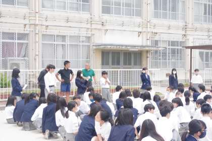 3年生が修学旅行。2年生がチャレンジ体験。広い校内には1年生だけです。そんな機会はめったにありません。1年生が、4時間目に評議委員が企画したクラス対抗の宝探しゲームを行いました。スタートの合図で一斉に走り出すと,グラウンドのベンチの下や校舎内の机の中を必死に探す様子が見られました。一人で複数の宝を見つけた宝探しの名人が何人も!大激戦のクラス対抗の結果は10ポイントの宝を3つ見つけた1・4組の優勝でした。2位はなんと同率となり2組と3組,3位は1・5組となりました。企画をしてくれた評議委員のおかげで楽しい活動ができましたね!