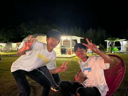 美味しそうにマシュマロを食べています。同時に、各テントでは入浴しています。