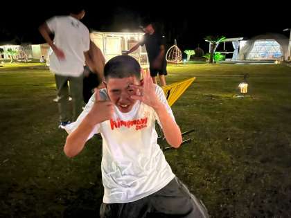 キャンプファイヤーの火も次第に消えてきました。煙の匂いがただよっています。