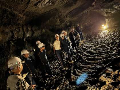 少し肌寒い洞窟内には、溶岩の固まっていく過程を示している岩があったり、とても歴史が感じられる場所です。