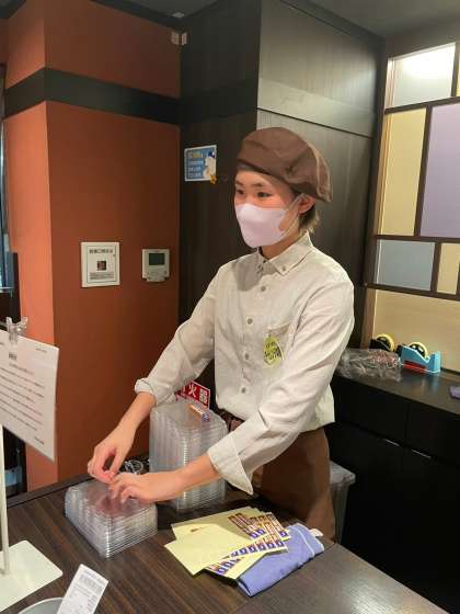 商品名のシール貼りを丁寧にやってくれてました。教員がインタビューすると,生徒は「楽しい!」と回答してくれました。志津屋です。