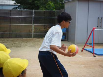 保育園の近くに消防車と救急車がきていたので,園児をつれて見に行きました。また,園庭では園児たちとボールを使って遊んだり,室内に入る園児のサポートをしたりと,いつもよりなんだか頼れるお兄さん,お姉さんでした! つぼみ保育園です。